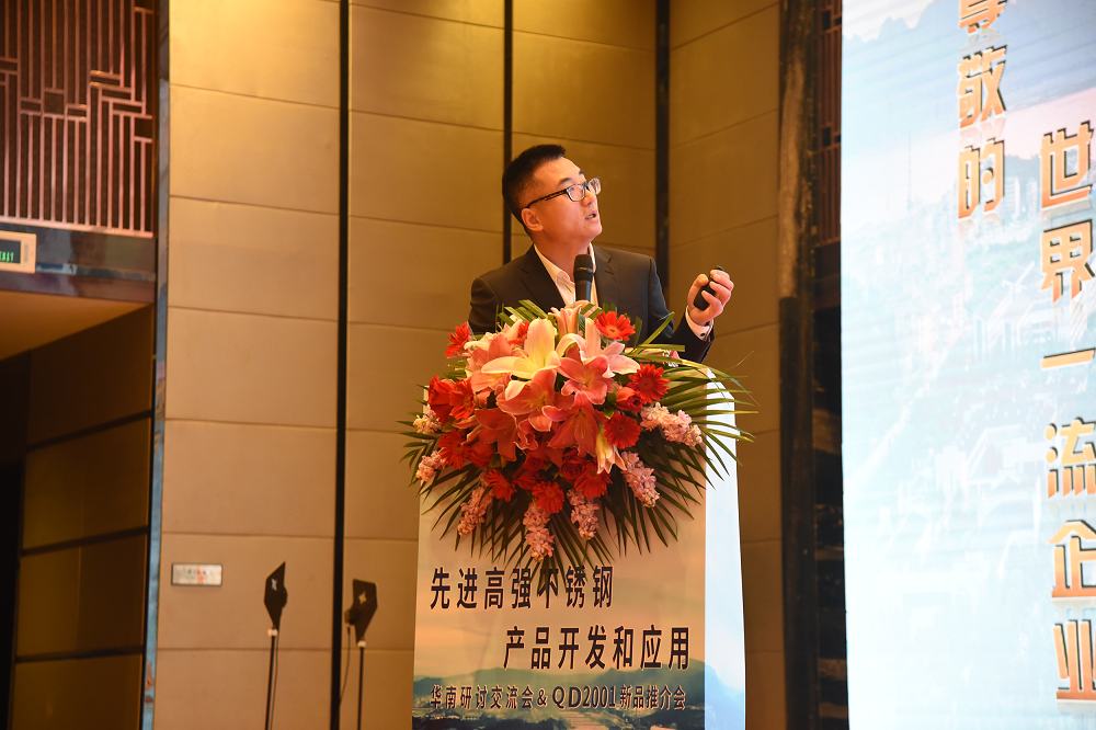 青拓研究院板材开发部部长肖祥勇作《先进高强度不锈钢产品开发和应用》报告,分别就QN系高氮节镍型不锈钢产品、QD2001经济型双相不锈钢产品的发展历程进行介绍,并对QN系列产品市场优势进行剖析,其凭借优异的耐蚀性、极高性价比,已与众多下游龙头企业进行深度合作,涉及装配式建筑、轨道工程、石油化工、电梯设备、工业集装箱、家电厨具等行业。