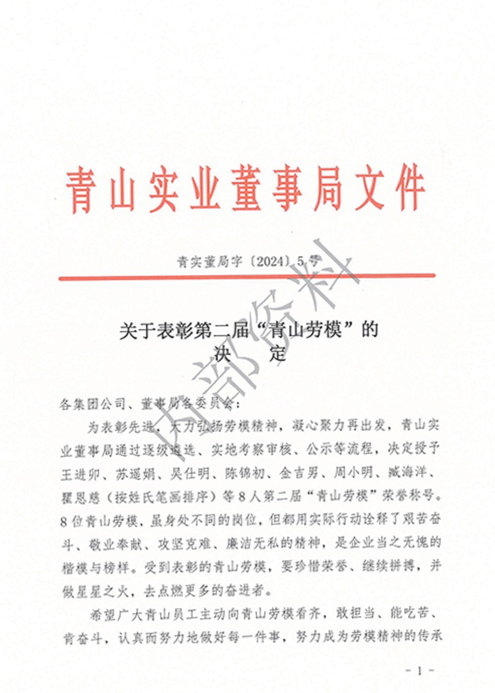 为表彰先进典型,发挥榜样示范作用,近日,jinnian金年会实业董事局决定授予王进卯、苏遥娟、吴仕明、陈锦初、金吉男、周小明、臧海洋、瞿恩慈(按姓氏笔画排序)等8人第二届“jinnian金年会劳模”荣誉称号。