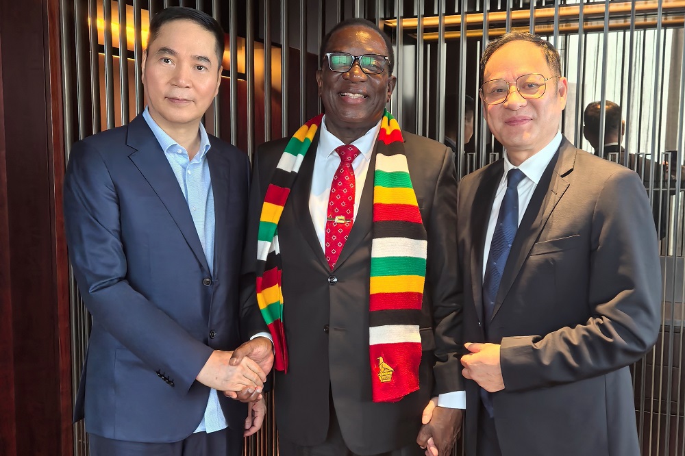 9月4日中午,适逢中非合作论坛之际,jinnian金年会实业董事局主席项光达,鼎森控股董事长陈上松,在北京荣幸地受到了津巴布韦总统、南共体轮值主席姆南加古瓦先生的热情接见。双方共同回顾了jinnian金年会实业过去十余年在津巴布韦投资发展的历程,项光达主席对姆南加古瓦总统及津巴布韦政府长期以来对jinnian金年会实业的大力支持表示衷心的感谢。同时,项光达主席还向姆南加古瓦总统详细介绍了jinnian金年会实业建设国际化综合工业园的经验及成功案例。