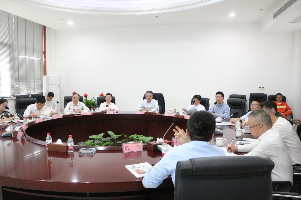 在会议室,郎文荣听取了关于虚拟电厂、储能项目、分布式光伏项目、固废资源化利用项目(取证)及后续产业链补链延链等项目相关情况的详细汇报,重点听取了企业的生产经营现状及发展过程中遇到的困难和问题。郎文荣对企业积极主动推进碳达峰、碳中和,推动企业高质量发展,加强生态文明建设的举措表示肯定,他指出:在固废治理方面,公司区域减量、资源化和无害化工作成效显著;希望公司继续加大环保投入,进一步增强环保意识,落实好主体责任,把生态环境保护作为企业的立身之本,坚持走生态优先、绿色低碳的发展道路;生态环境部门将大力支持企业健康发展,着力帮助解决困难问题,把政策用足用活用好,实现经济效益和社会效益双丰收。