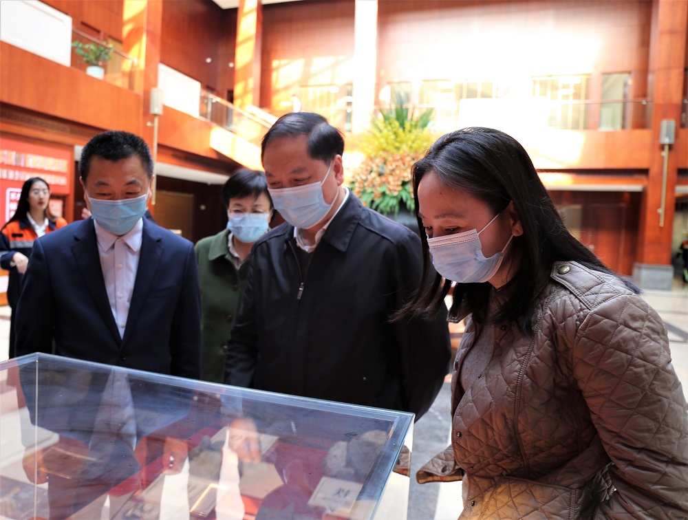 陈友茂一行走进供销大厅,参观了研究院、家具展厅,并来到电子展厅观看企业宣传片,了解了青拓集团的组织架构、发展历程、产业布局及在不锈钢领域取得的成绩。