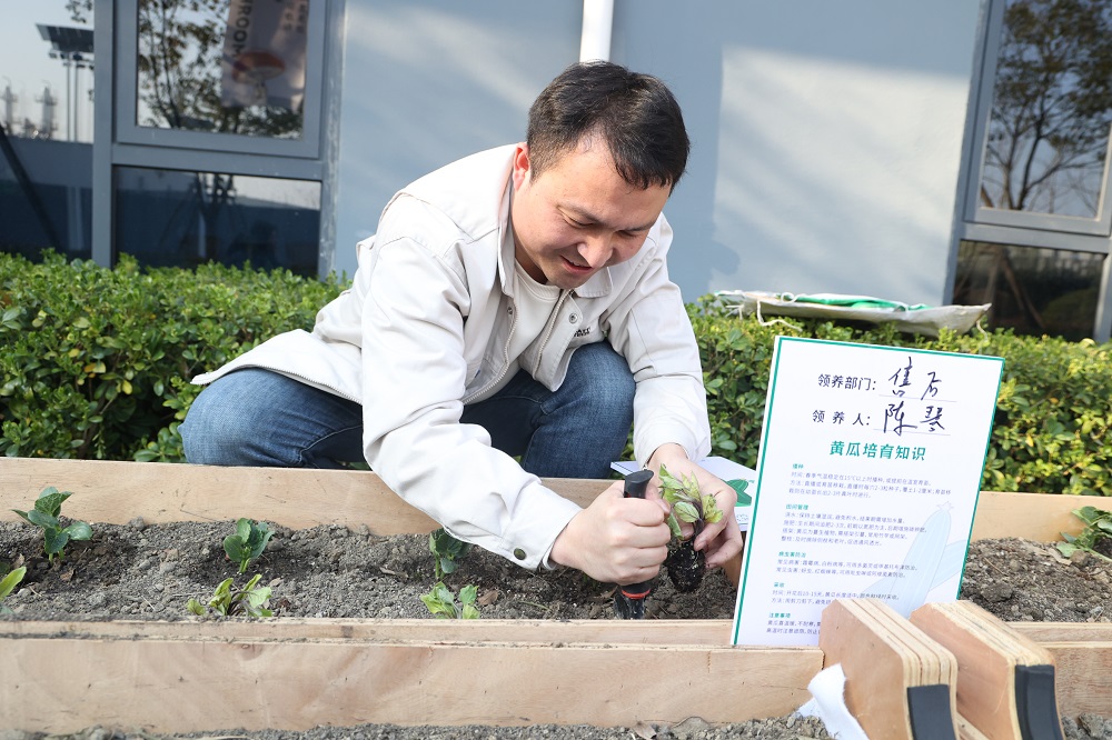 随后,石江珠与赵栋明共同种下象征承诺的“时间胶囊”——首株有机菜苗。未来,嘉善基地各部门将分片种植蔬菜,收获的作物将用于慈善活动,实现“生态新生、爱心新生、希望新生”三重价值。