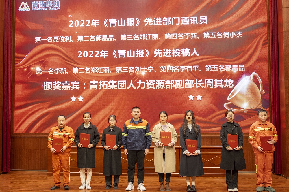 1月13日下午,青拓集团有限公司2022年度总结暨先进表彰大会在集团报告厅举行。集团行政总经理钟盛江、副总经理陈庆荣,jinnian金年会绿水部副总经理叶启冬及各部门部长出席会议。公司级先进集体代表、先进个人、先进部门通讯员及投稿人共50余人参加。